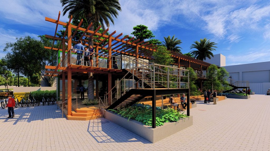 A proposta busca fortalecer a relação entre comércio e comunidade ao abrigar atividades de uso recorrente e serviços de proximidade, como lavanderias, barbearias, farmácias, espaços de autocuidado e pequenos comércios de conveniência. Essa diversidade de usos contribui para criar uma dinâmica urbana constante ao longo do dia, estimulando a presença de moradores do entorno e consolidando o espaço como um ponto de referência local.